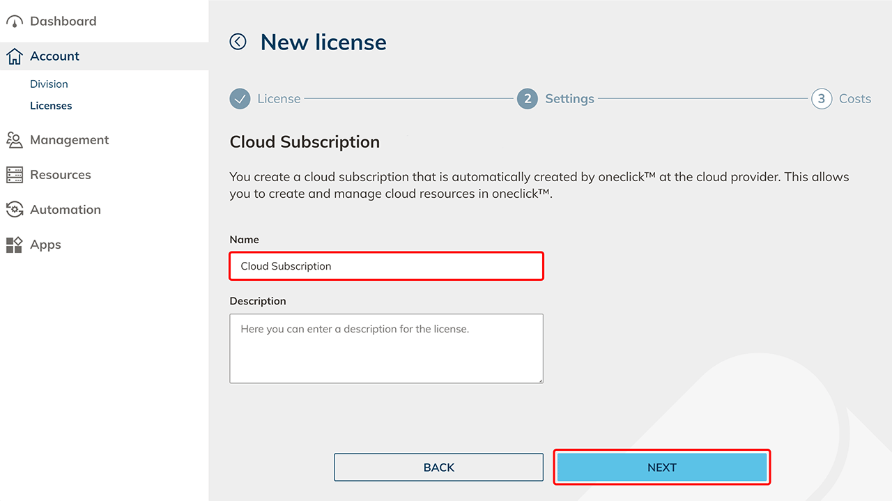 You do not have your own cloud subscription, but would like to create cloud resources directly in oneclick™?