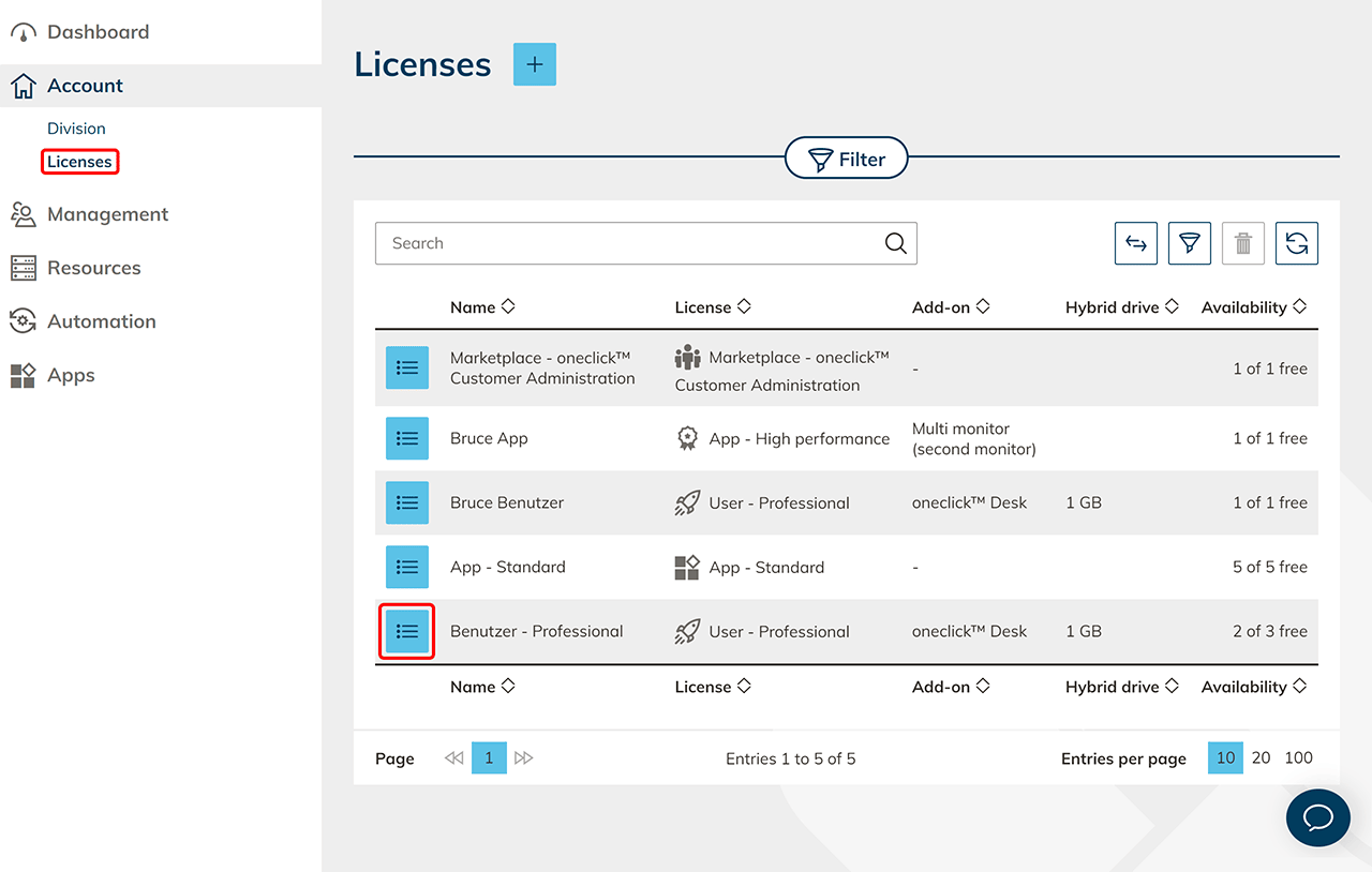 - Go to the detail page of your cancelled license, by clicking on the List icon .