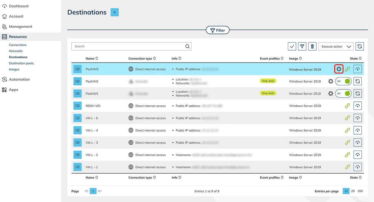 In the oneclick™ Admin, select the Resources tab and then subitem Destinations. Select a connected destination.