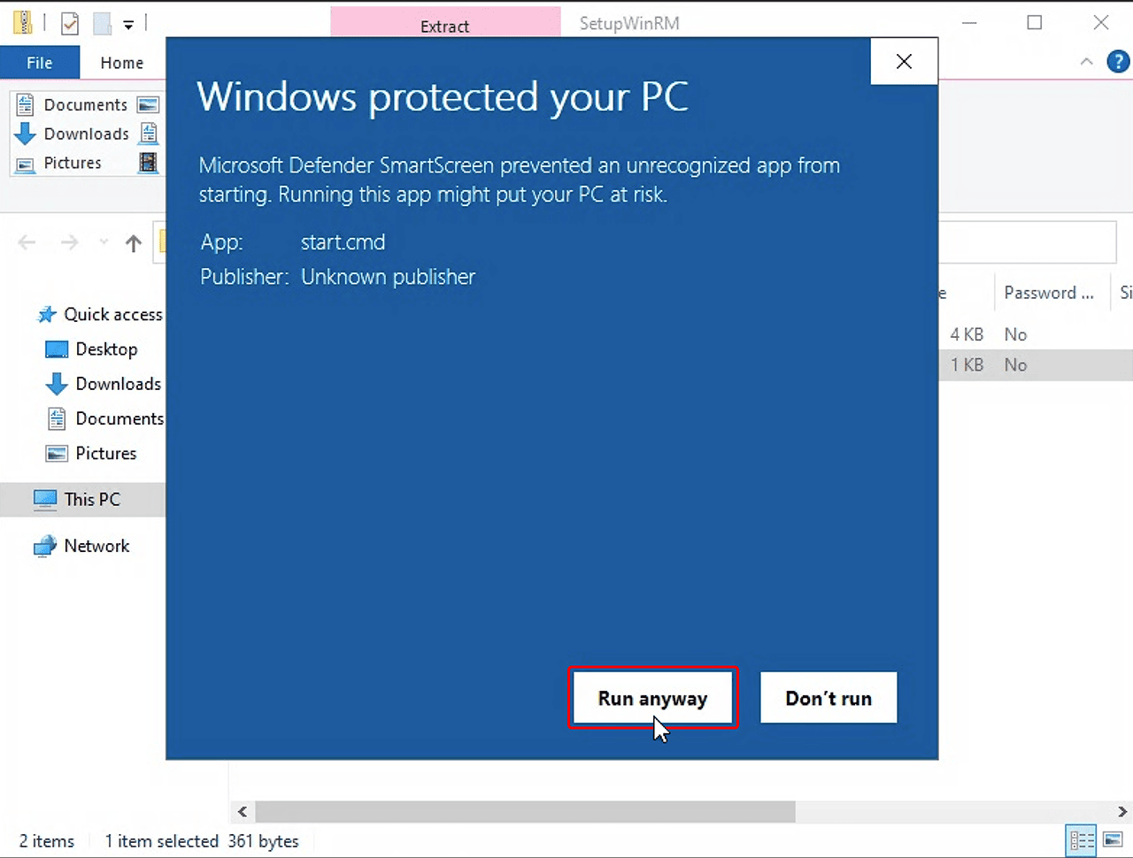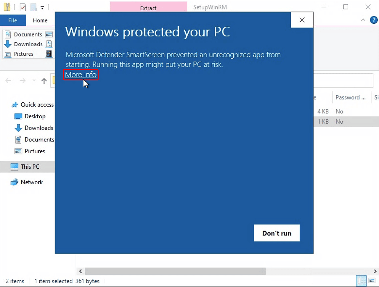 A warning message appears on your screen. In the window, click More info and then click Run anyway.