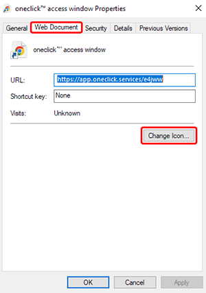 Create shortcuts to the oneclick™ access window and the RDP file to start your remote connection faster. Optionally, you can assign your shortcut a custom oneclick™ icon.