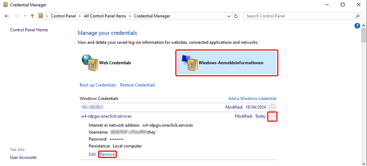 1. Delete saved credentials