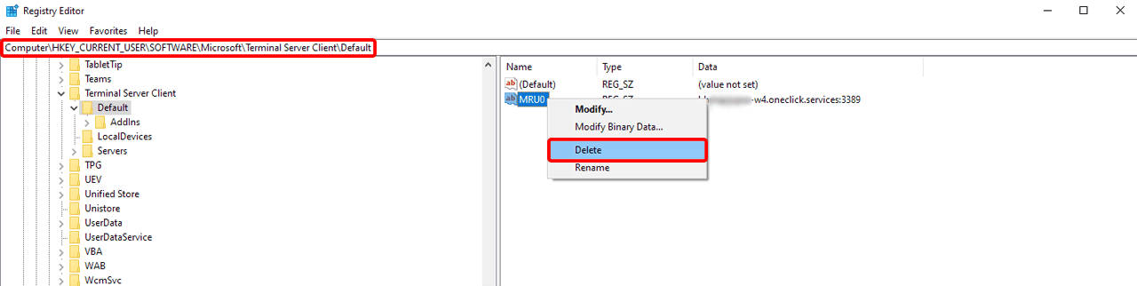 2. Delete the history of recently used RDP connections
