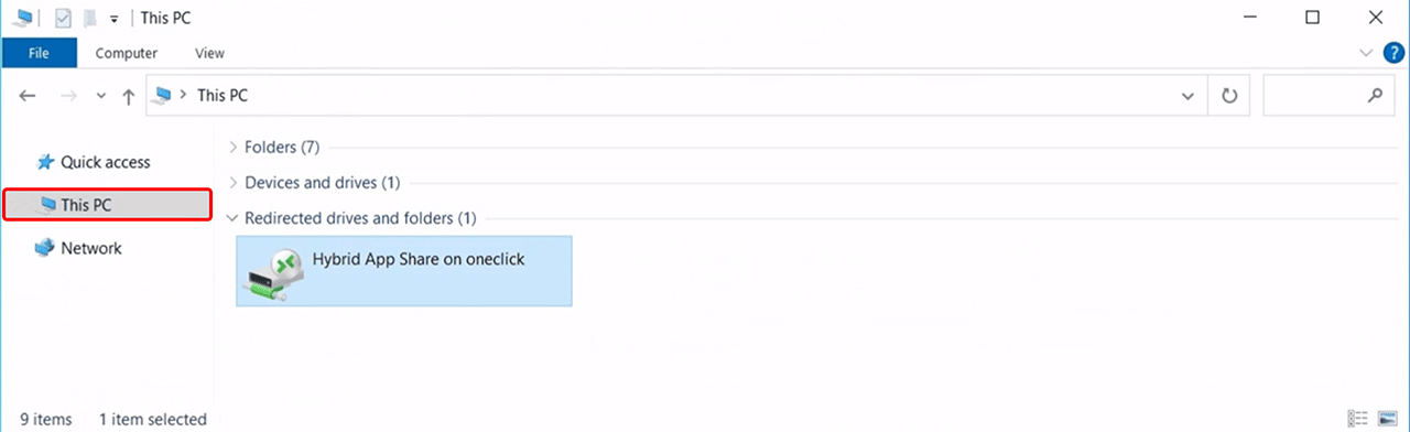 - To get to “Hybrid App Share on oneclick”, open your Windows Explorer and select This PC in the navigation area on the left.