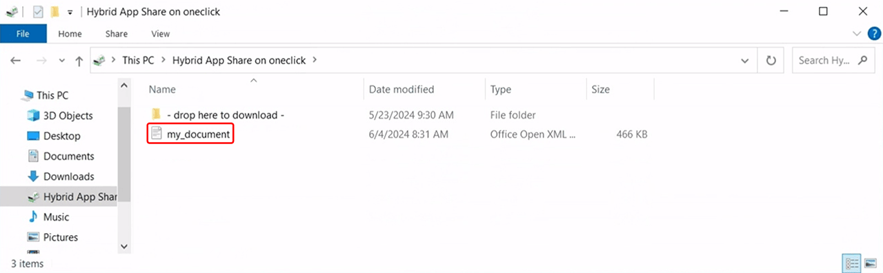 - Open the “Hybrid App Share on oneclick” drive. Your copied files will be located here.