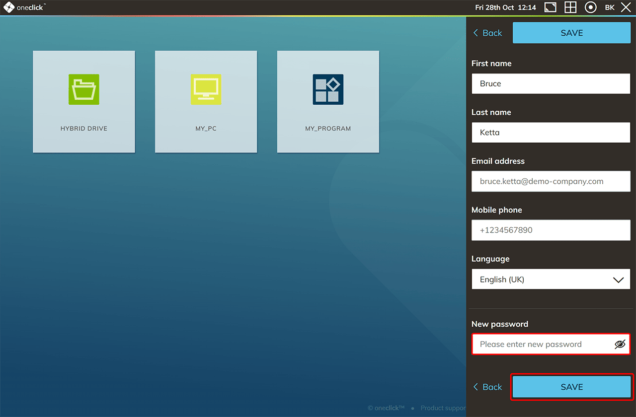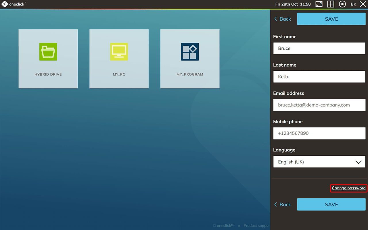 If you are logged into as a professional user at the oneclick™ Workspace, you can change your password in the desk menu by yourself.