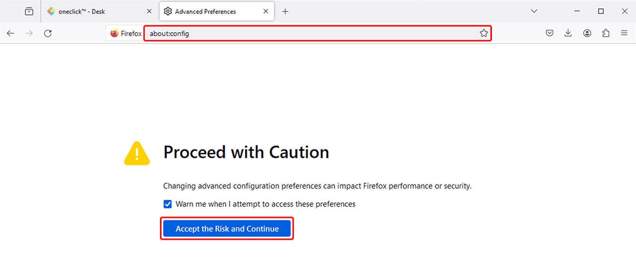 You are using Mozilla Firefox and want to access the clipboard while working in oneclick™?