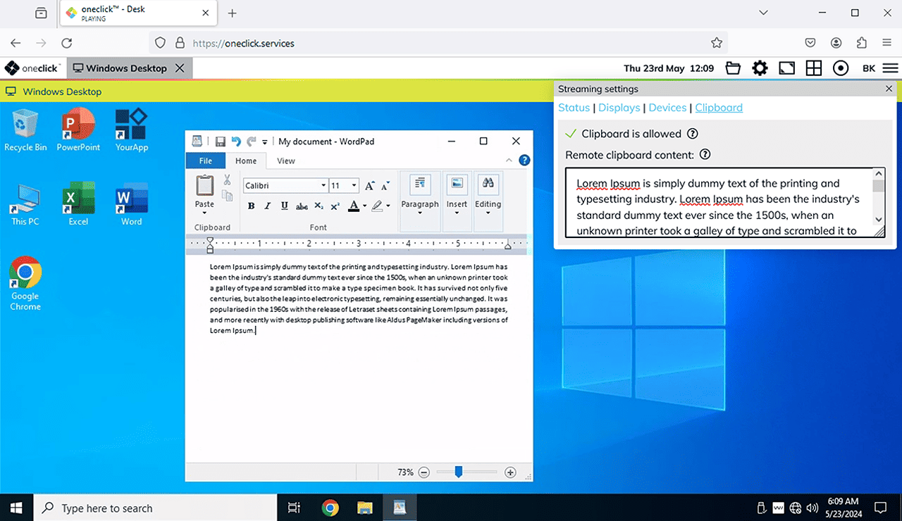 Restart your browser, log in to oneclick™ as usual, and open your Remote Desktop. The clipboard should now work.