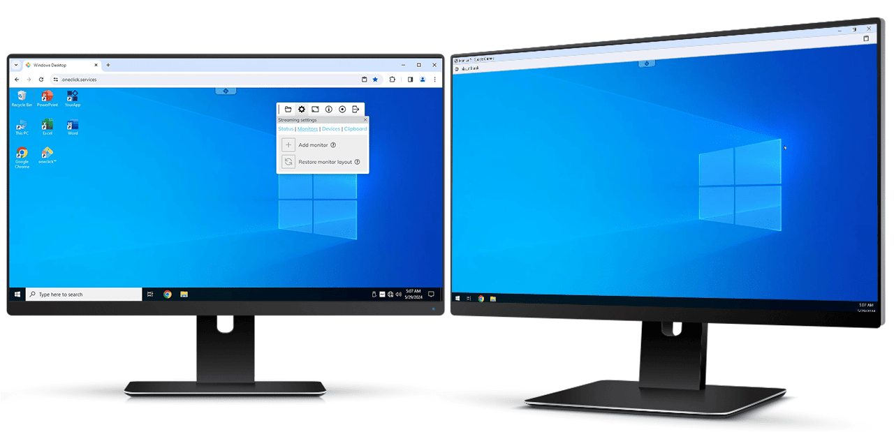 If you want to use a oneclick™ app, e.g. a remote desktop on several monitors, the "Multi monitor" add-on must be activated in your app licence. Please contact your administrator for this.