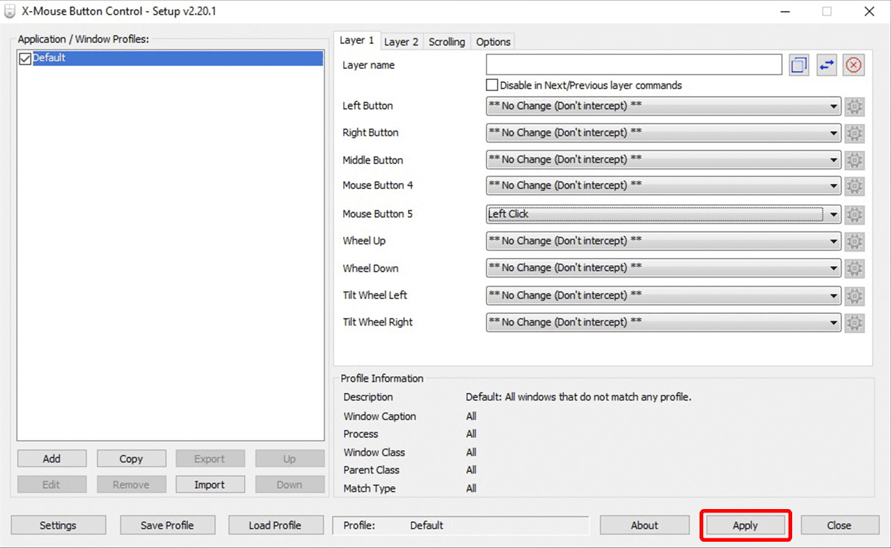 If the manufacturer of your device does not provide any software, it is still possible to assign individual mouse buttons through a third-party program. We recommend X-Mouse Button Control for working in Windows. With this program, up to five mouse buttons can be reassigned quickly and easily.